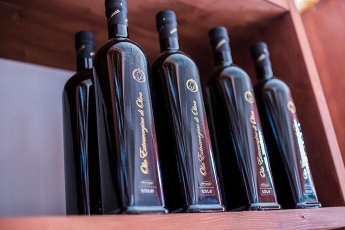 The business of winemaking and the sale of the bulk product is accompanied by the trade of extra virgin olive oil obtained in part from the family's olive groves. Wine and oil, together with other foods made in Puglia, are made available to the customer within the company store.